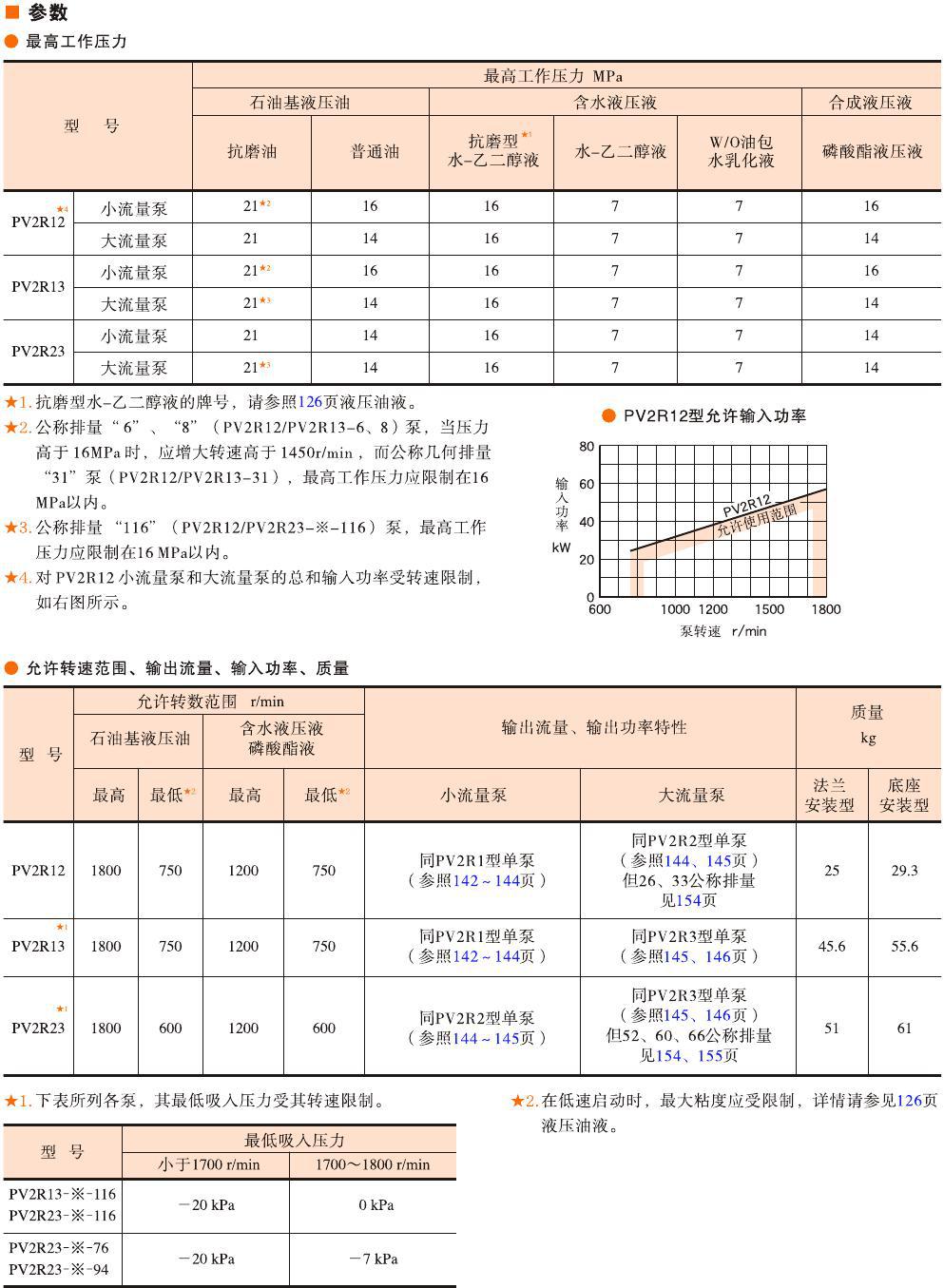 油研液压泵PV2R系列的压力,转速,排量,流量,效率