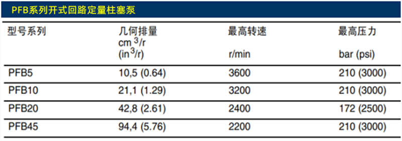 威格士柱塞泵PFB系列威格士定量柱塞泵技术参数:
