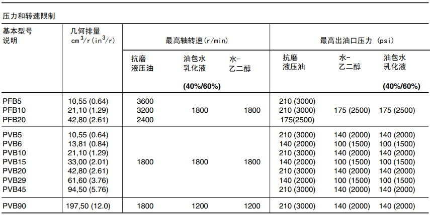 威格士PVB系列轴向柱塞泵技术参数: