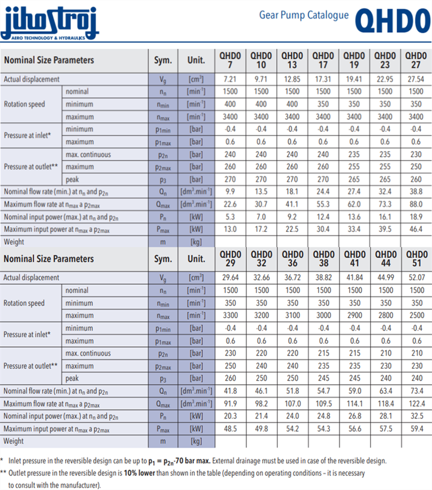 QHD0系列捷克JIHOSTROJ齿轮泵型号参数: