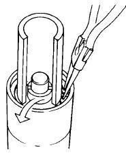 使用卡簧钳取出卡簧。意:内部有被压紧的弹簧,防止弹出伤人