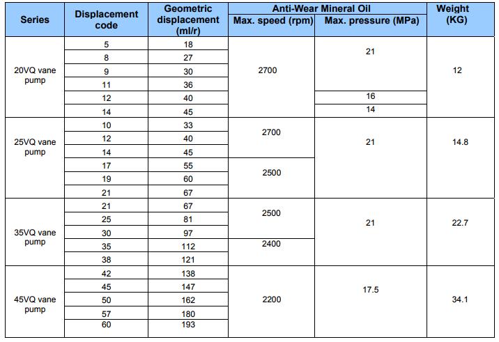 V系列双联泵包括2520V、2525V、3520V、3525V、4520V、4525V、4535V等型号,排量范围广泛。