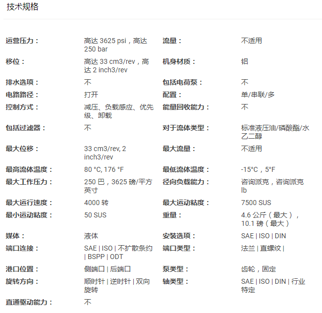 PGP511A0060CK1H2NE5E3B1B1派克系列齿轮泵3349111942参数介绍