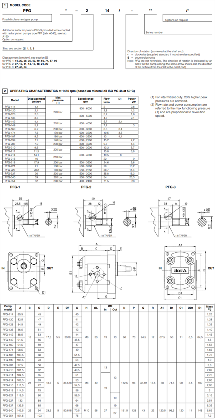 PFG1,PFG2,PFG3系列阿托斯ATOS齿轮泵,PFG系列齿轮泵型号及参数