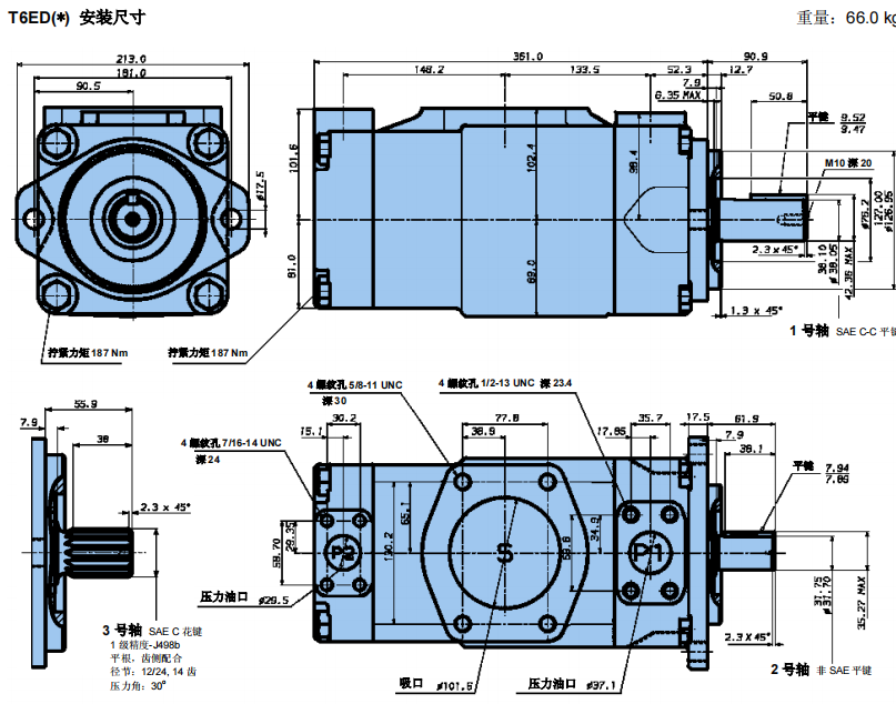 T6EC,T6ED,T6EE系列派克DENISON双联叶片泵安装尺寸