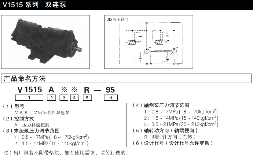 发布时间:2022-12-01 10:19:52 浏览次数:1175大金V1515系列双连泵型号说明: