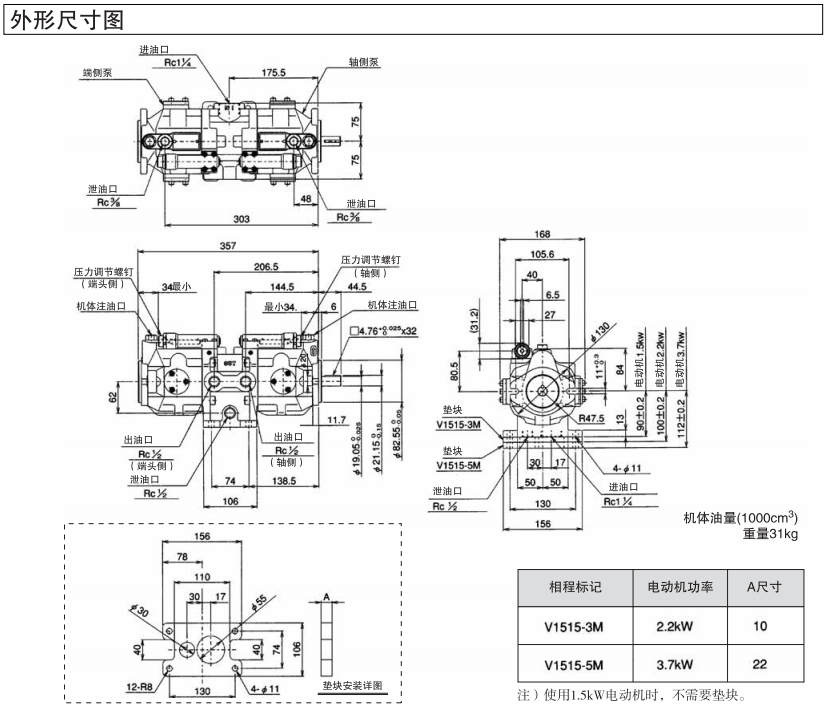 V1515 A ※※ R -95,V1515系列双连泵尺寸图