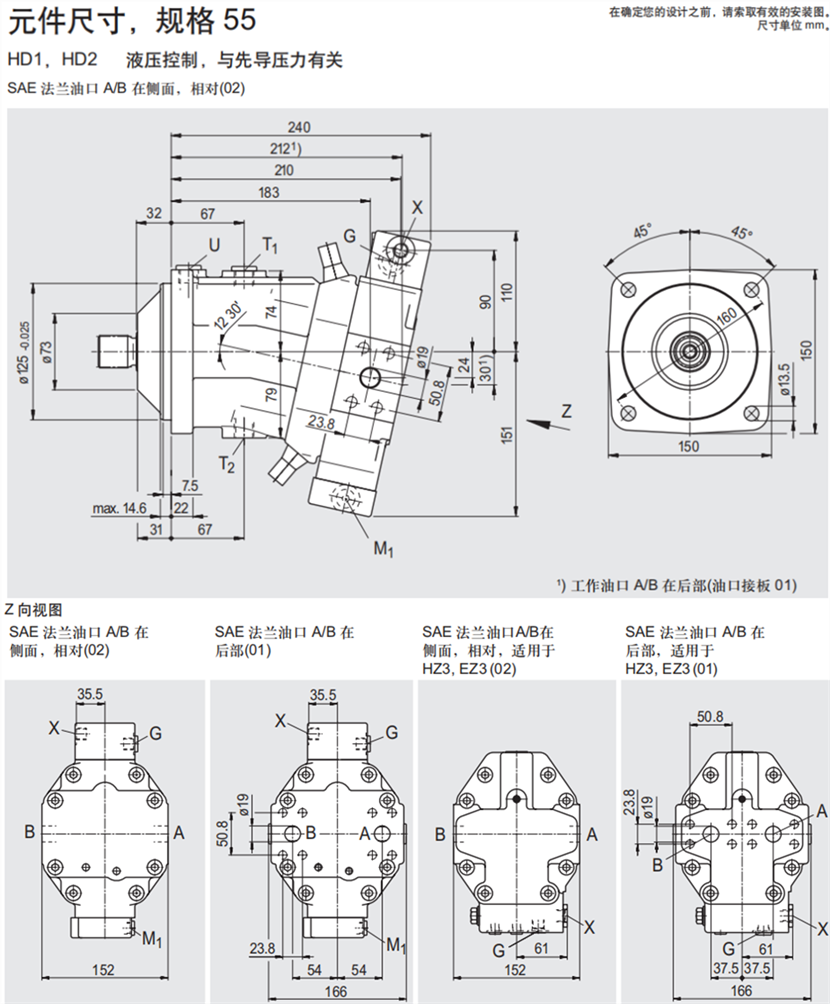 A6VM55系列力士乐轴向柱塞变量马达安装尺寸
