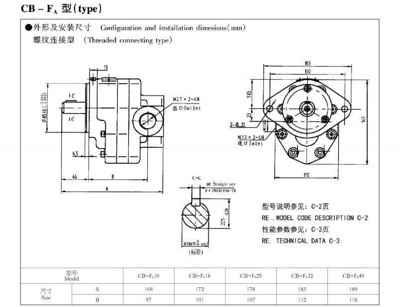 CB-Fa系列齿轮泵外形及安装尺寸: