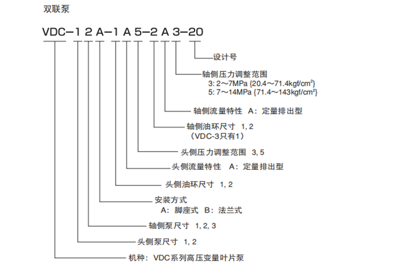 不二越VDC系列高压变量叶片双联泵型号说明: