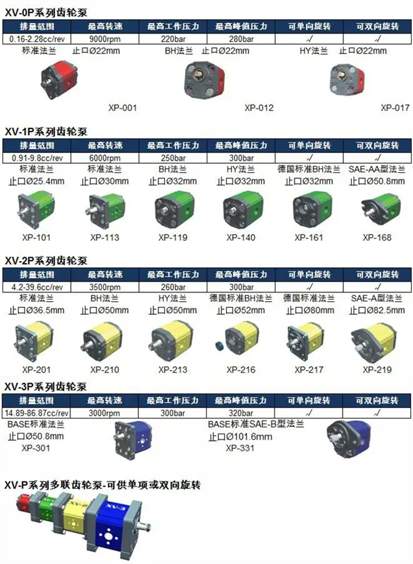 意大利XV-0P系列带外齿的铝制单作用齿轮泵,广泛应用于润滑系统,微型电源以及需要相对自由和精确工作的任何地方,同时保持高压。