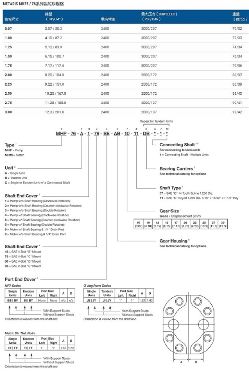 正品Metaris MH75 / 76系列轴承泵和电机有10种不同的齿轮尺寸,带有各种安装法兰,轴配置和端口选项。还可提供多节单元,背负式设计,销钉组件和分流器。这些泵采用球墨铸铁外壳,可为最苛刻的应用提供高达3000 psi的额定压力。该MH系列是从商业等齿轮泵产品的完美替代品® /帕克®,Permco ®和曼西®。
