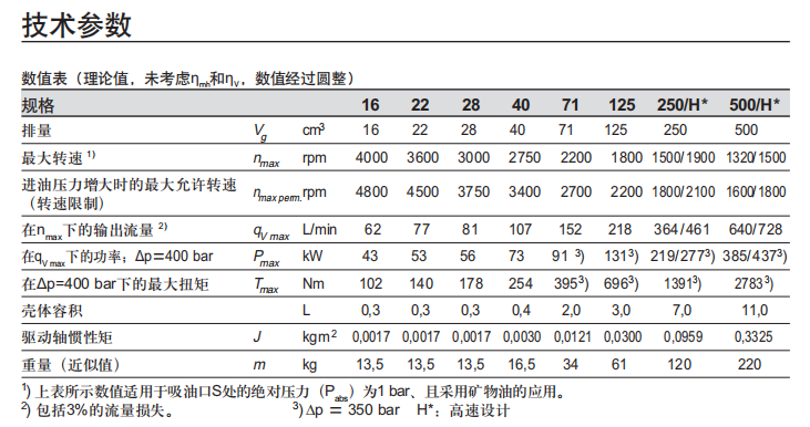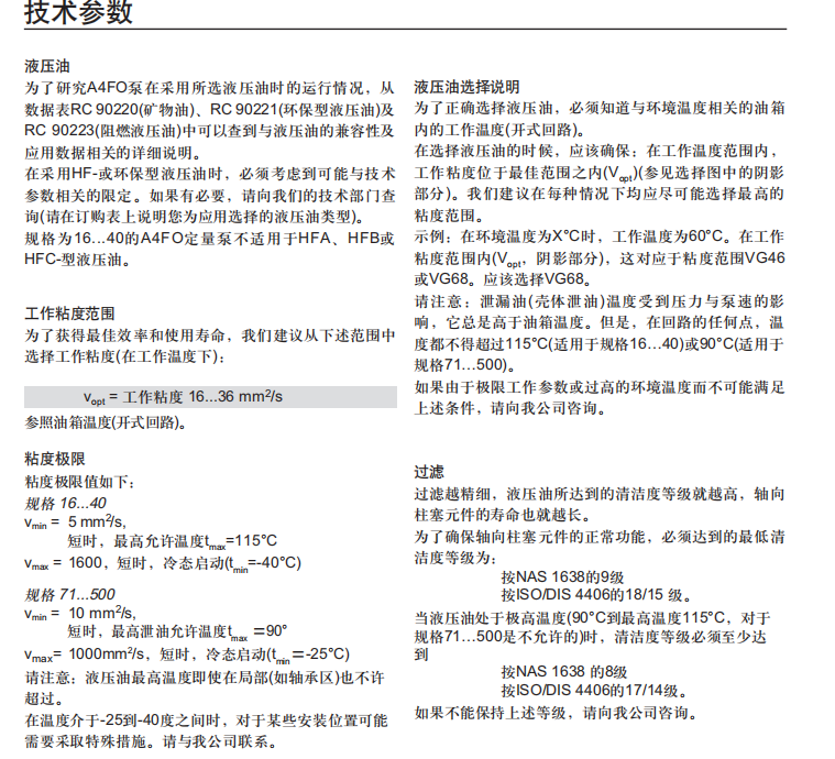 力士乐轴向柱塞固定泵 A4FO技术参数: