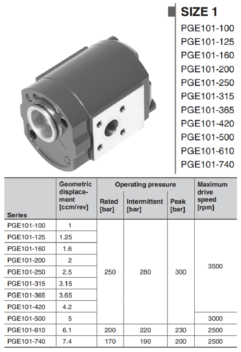 PGE101 是我们用于开环液压系统的外啮合齿轮泵的 1 号型号。
