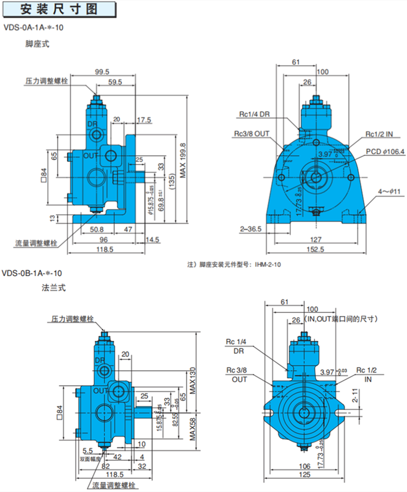 VDS -不二越可变容积叶片泵安装尺寸图: