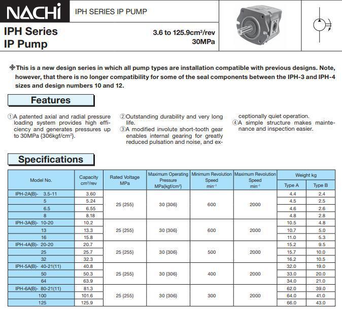 日本不二越齿轮泵采用节能的设计理念,是一种经济型泵。能装高精度的补偿机构,油环具有弹力、且泵芯随压力上升而自动移动到中心、使排量为零、因为压力达到设定压力时,流量几乎为零。可以省去回路中的流量阀及泻荷阀,与压力成比例增加的输入可以防止油温上升,实现低噪音及具有耐用性.不二越齿轮泵有IPH单联,IPH双联泵 ,高效率------采用专利技术用轴向和径向加压形式提高了效率,压力可达到300Mpa。