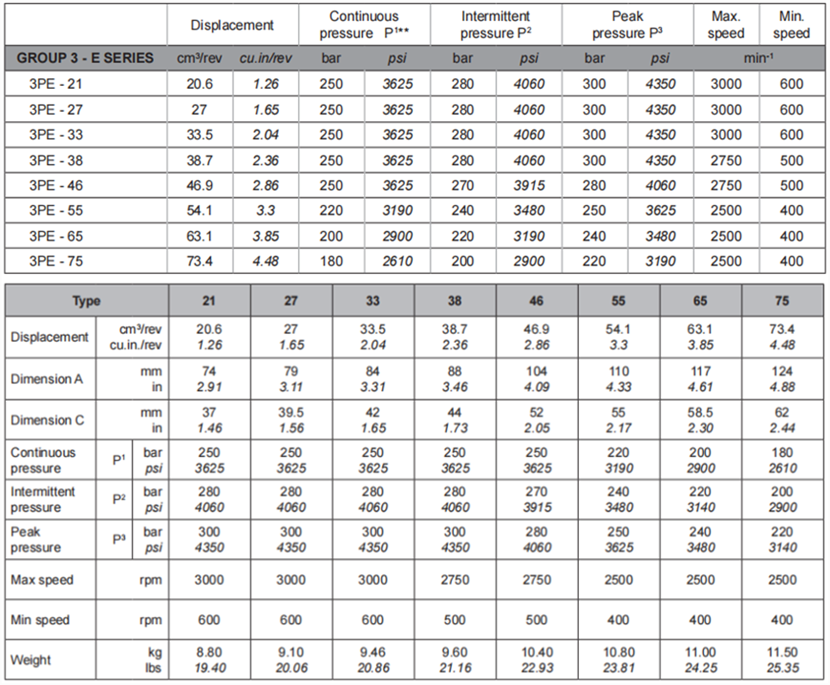 SALAMI萨拉米齿3PE系列齿轮泵型号及规格参数: