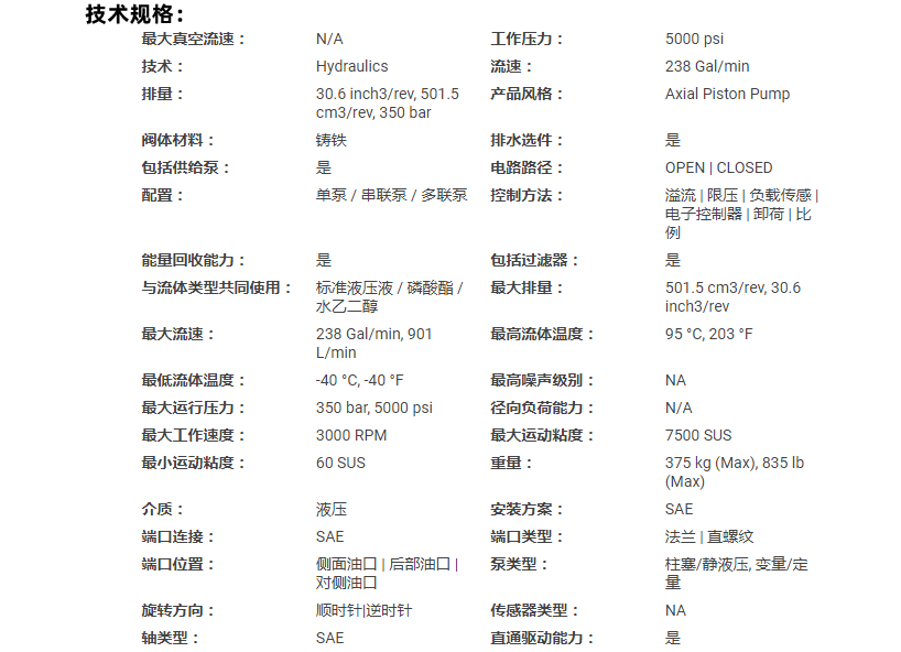 总之,Parker派克金杯系列液压泵与电机以其卓越的性能、广泛的应用领域以及先进的技术优势,成为了流体传动与控制领域的佼佼者。无论是开式还是闭路应用,金杯系列都能为用户提供可靠、高效、易用的解决方案。未来,随着技术的不断进步和应用领域的不断拓展,相信Parker派克金杯系列液压泵与电机将会迎来更加广阔的发展前景。
