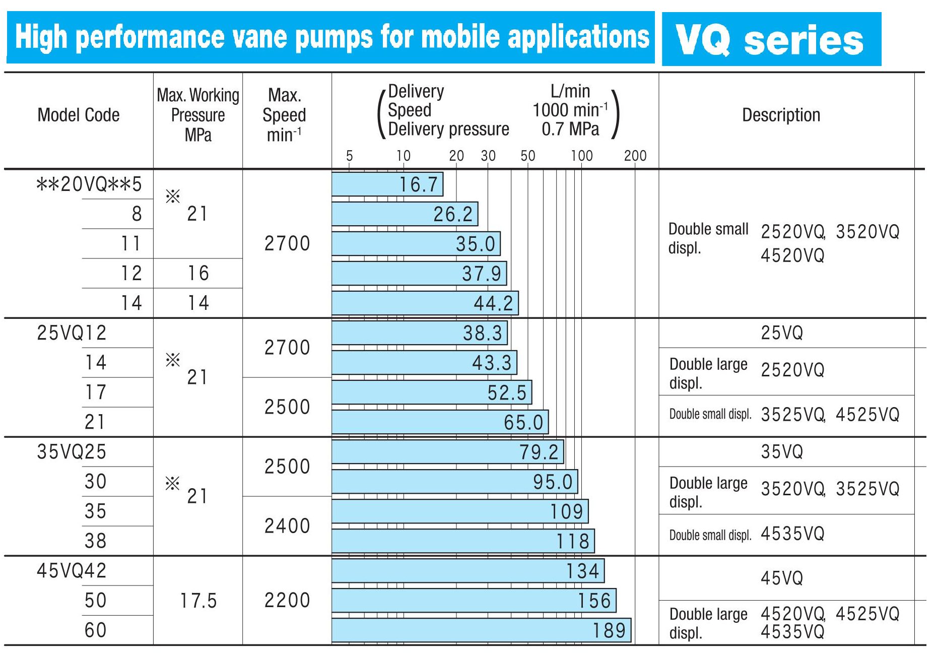VQ 系列高性能叶片泵专为移动应用而设计。与传统的叶片泵相比,该泵的柔性侧板机构提供了更高的容积效率,并且在热或冷环境下的启动过程中提供了高抗咬合性。