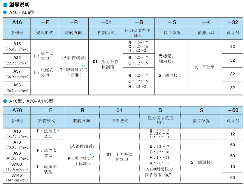 油研柱塞泵A90系列型号: