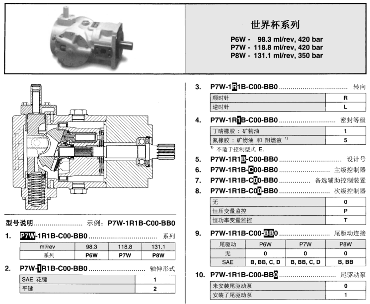 P6W-98.3 ml/rev,420bar , P7W-118.8 ml/rev,420bar , P8W-131.1 ml/rev,350bar